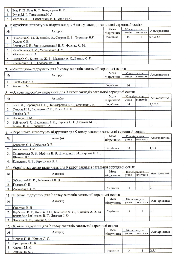 - рекомендаційні списки літератури